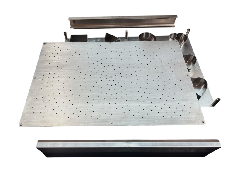 Con questa teglia BREVETTATA oltre alla pasta sfoglia puoi disporre il tuo impasto farcito direttamente su un foglio di carta da forno anche dentro anelli microforati di diverso spessore e forma; chiuso il coperchio puoi portarla in cottura con la sicurezza di ottenere sempre un prodotto fragrante e altezza costante. Un prodotto esclusivo oltre che per la pasta sfoglia sp.7 mm include 3 set aggiuntivi di distanziali in acciaio inox altezza 2 - 3.5 - 4.5 cm con i relative ganasce.